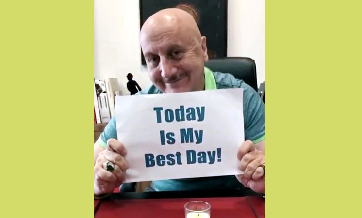 In the video, which goes in reverse along with some upbeat music, Kher can be seen holding different placards in his hands, showing them one after another. They read, “Today is my best day”, “My Parents introduced me to this beautiful world”, “It’s my birthday”, “Wish Karo na”, “Jai Ho” and at the end he un-blows the candle, placed in front of him.