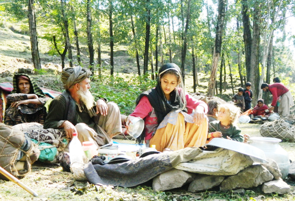 Tribal nomads traditionally move with their livestock to the upper slopes of the northern Himalayas during the summer, and return to the plains in winter after covering hundreds of miles on foot along serpentine tracks.
