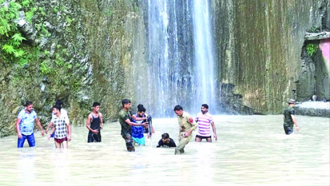The incident had happened when a large number of people, mostly from Jammu district, had gathered at the picnic spot and some of them were taking a bath under the waterfall.
