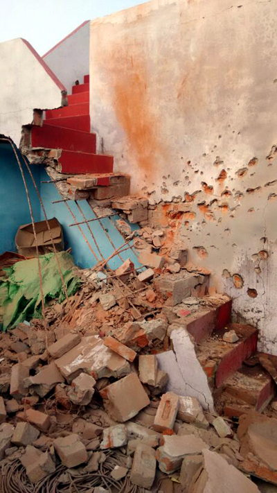 Pakistani Rangers resorted to shelling with 81mm mortars and heavy fire arms throughout the last night, which continued till 6.30 am targeting civilian locations and forward Border Out Posts (BOPs) of the BSF in Arnia sector including Arnia town damaging more than 50 houses and cattle shed and leaving a woman dead and five others injured. A number of cattle were killed or injured in Pakistan’s shelling and firing.