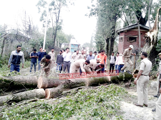 The windstorm uprooted several trees in North and Central Kashmir resulting in massive traffic jams at several places.