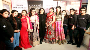 Women in bridal wear at Lakme Salon in Jammu on Sunday. -Excelsior/Rakesh