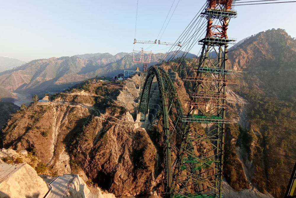 Work in progress on world’s highest railway bridge at Khouri in Reasi district. — Excelsior/ Romesh Mengi