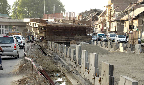 Work on Rambagh-Jehangir Chowk flyover stopped over non-release of payment to construction company. —Excelsior/Shakeel