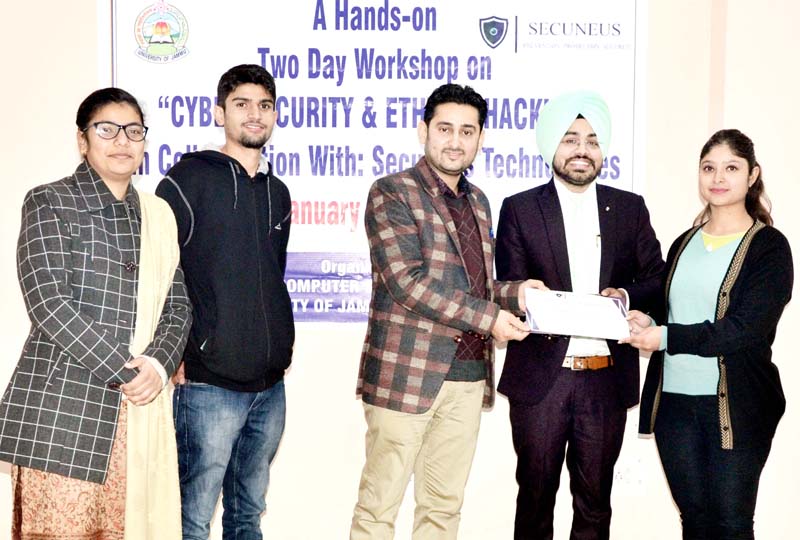 JAMMU, Jan 10: Two-day hands-on workshop on the theme ‘Cyber Security and Ethical Hacking’ organized by Department of Computer Science and IT, Kathua Campus, University of Jammu in collaboration with Secuneus Technologies Pvt. Ltd., Jalandhar concluded today.