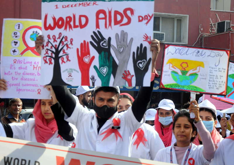JAMMU, Dec 1: The ‘World AIDS Day’ celebrated enthusiastically across the Union Territory of Jammu and Kashmir by various departments and education institutions by holding different activities to spread awareness about the deadly disease, here today.