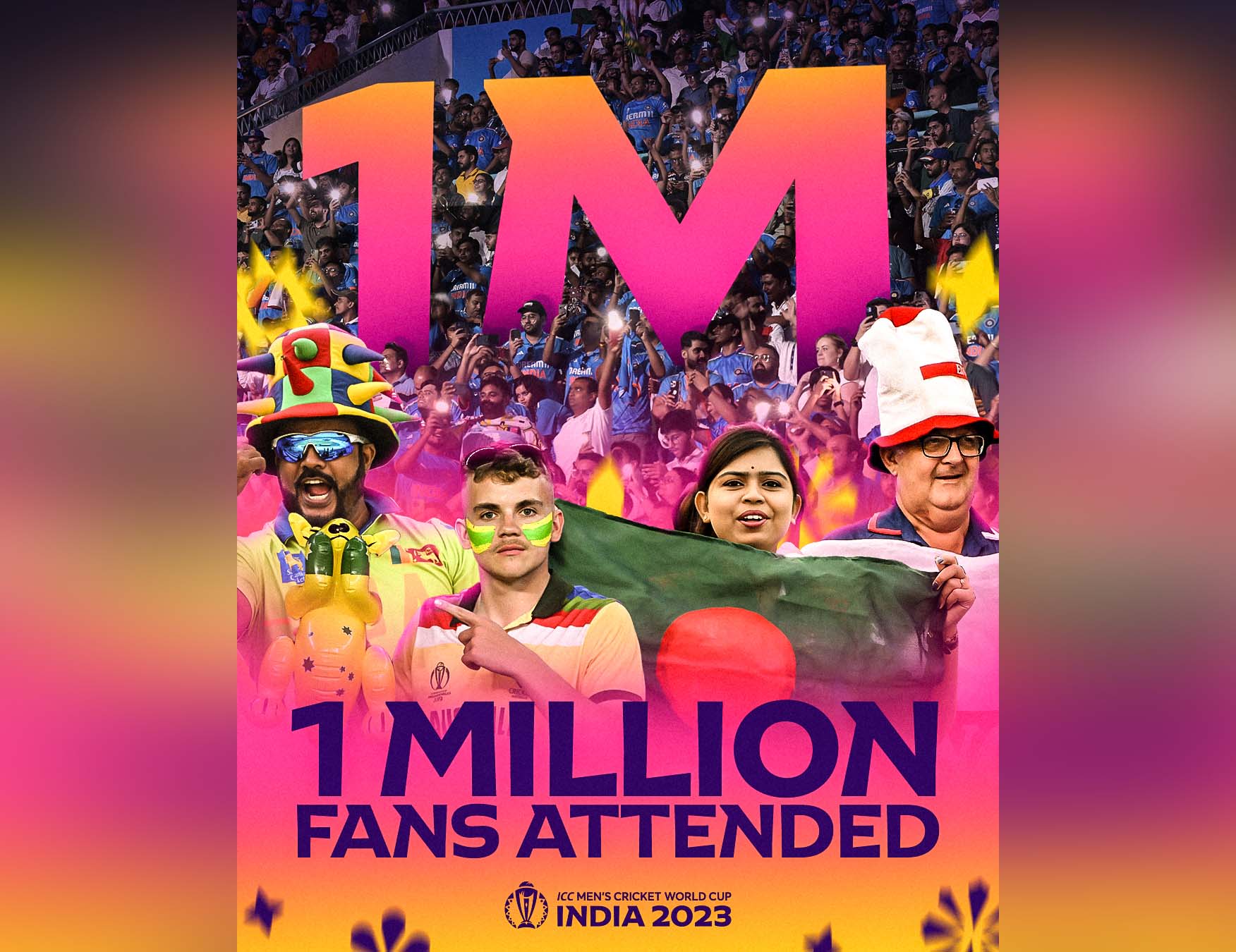 Ahmedabad, Nov 11: Over a million fans have attended the ongoing cricket World Cup with the tournament on track to become one of the most attended ICC events in history.