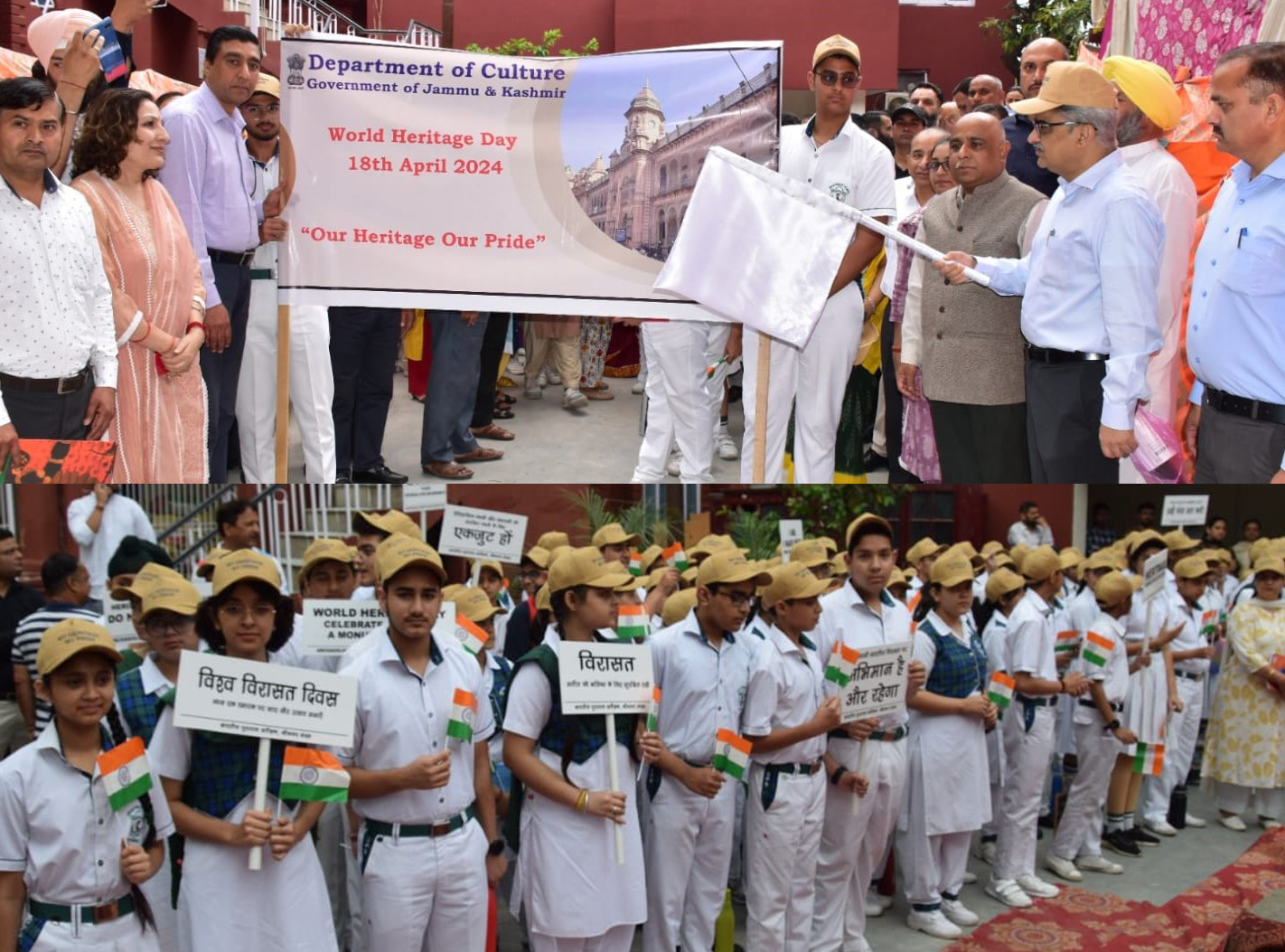 JAMMU, Apr 18: On the occasion of World Heritage Day, Chief Secretary, Atal Dulloo, today morning flagged off a heritage walk from Shri Ranbir Singh (SRS) Library, Kachi Chawni to Mubarak Mandi Heritage Complex here.