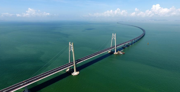 The main structure of the 55 kilometre long sea bridge linking Hong Kong, Zhuhai and Macao was completed on Friday.