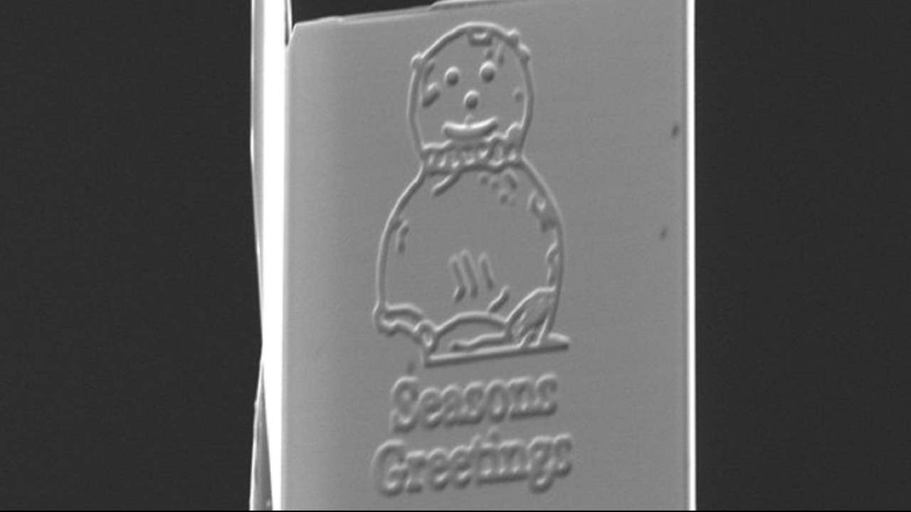 LONDON: Scientists have created the world’s smallest Christmas card – measuring just 15 micrometres wide – that could fit over 200 million cards in a single postage stamp.