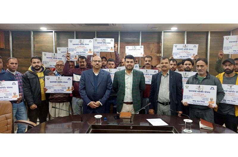 JAMMU, Jan 20: Commissioner, Jammu Municipal Corporation, Dr Devansh Yadav today handed over Dogri version PM SVANidhi plates to the street vendors of Gandhi Nagar and Jewel areas at a function held here.