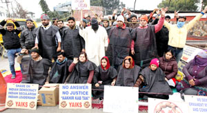 JAMMU, Jan 22: The indefinite dharna launched by Youth All India Kashmiri Samaj (YAIKS) in front of Raj Bhawan in support of its demands including implementation of PM’s package in toto and absorption of 221 left out youth entered fifth day today.