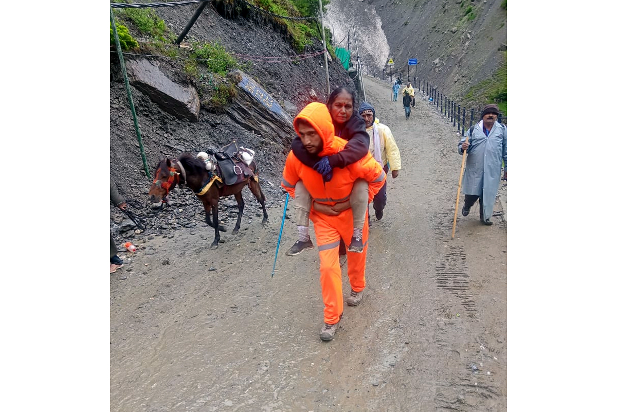 He shared a photograph of an SDRF Jawan carrying a lady yatri on his back for three kms through the unforgiving terrain of the Himalayas on her way back from the holy shrine. “I applaud them for being the beacon of safety for the citizens,” Shah tweeted.