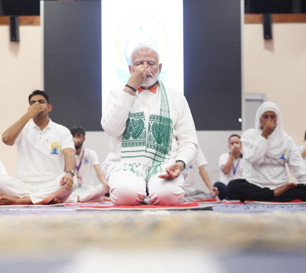 PM addressing at 10th International Day of Yoga celebrations at Srinagar, in Jammu and Kashmir