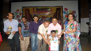 Young participant being felicitated during a Cultural Show organized by Unique Dancing Institute.