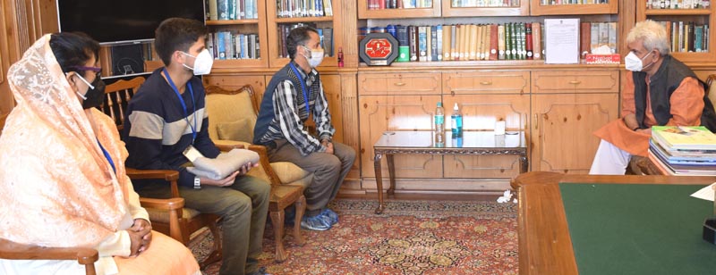 SRINAGAR, Oct 20: Lieutenant Governor, Manoj Sinha met J&K NEET topper Basit Bilal Khan at the Raj Bhavan today.