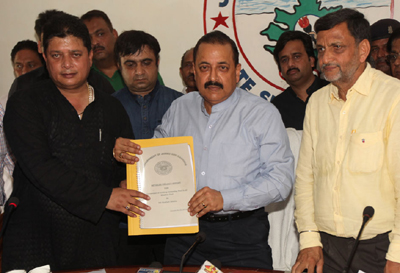 Earlier, MLA Jammu East, Rajesh Gupta personally handed over the file for modernization project of MA Stadium swimming pool to the Union Minister and also apprised the later about some other issues and demands.