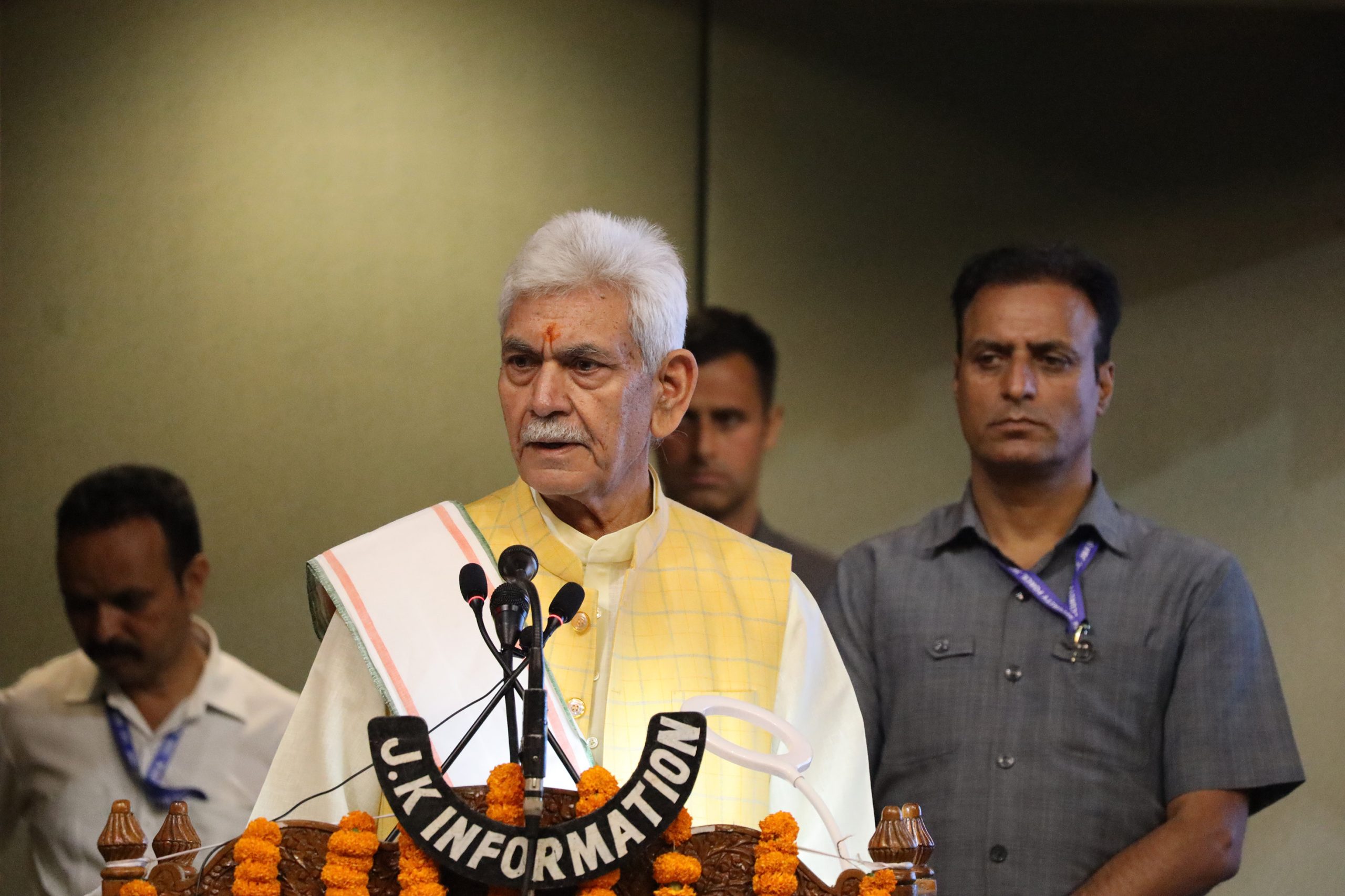 Srinagar, Oct 2: Lieutenant Governor Manoj Sinha on Wednesday addressed teachers, students, and participants during the Gandhi Jayanti programme at SKICC, urging the people of Jammu and Kashmir to actively contribute towards peace, development, and self-reliance in the Union Territory.
