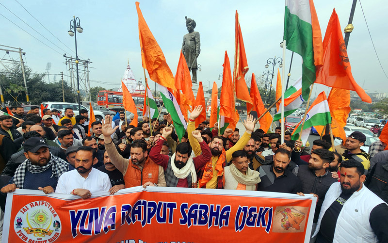 JAMMU, Feb 10: Demanding restoration of Statehood status to Jammu and Kashmir, Yuva Rajput Sabha (YRS) took out a massive protest rally in Jammu on Monday.