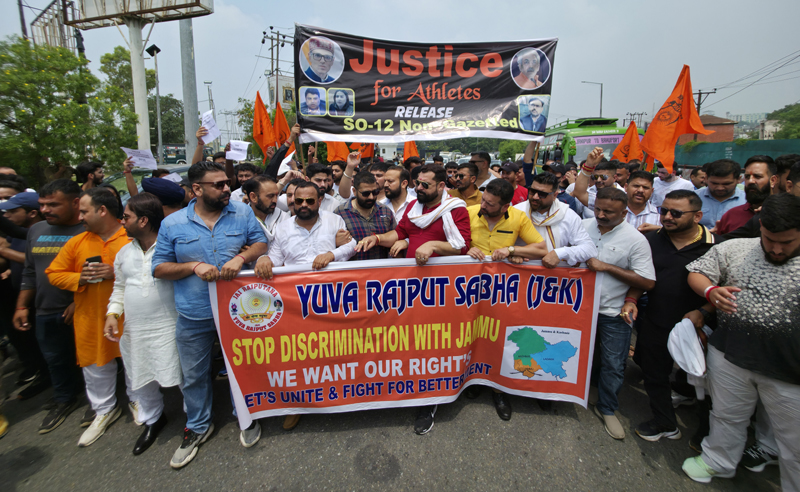 The protesting Yuva Rajput Sabha leaders also supported the concern of outstanding sports persons of Jammu and Kashmir waiting for the release of the selection list under SO 12.