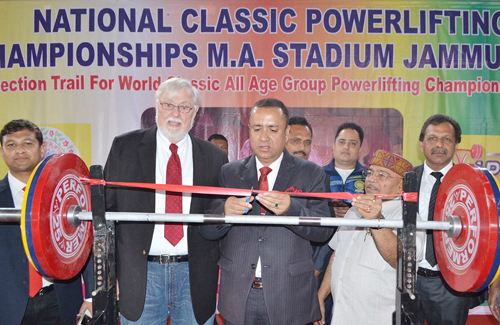 Minister for Food, Civil Suupplies and Consumer Affairs, Choudhary Zulfkar Ali inaugurating National Classic power lifting championship in Jammu.